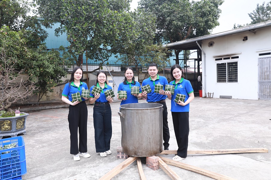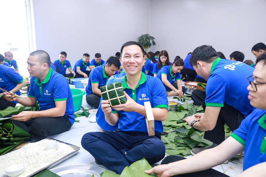 Không khí chương trình càng trở nên ấm áp và gần gũi hơn với hoạt động gói bánh chưng truyền thống. Từng chiếc bánh xanh mướt, vuông vức được gói bằng đôi bàn tay khéo léo của các thành viên không chỉ mang đậm hương vị Tết cổ truyền, mà còn là biểu tượng cho sự sum vầy, đoàn viên và tinh thần gắn bó của đại gia đình Tâm Bình.
